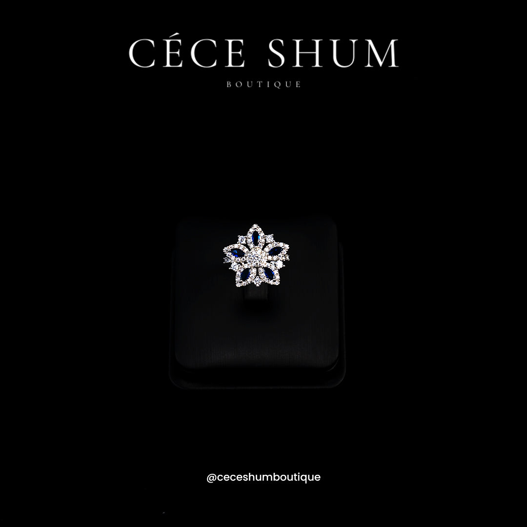 A crystalline mandala of sapphire and starlight, the Alexandra ring captures the profound depth of your spirit within a celestial bloom that never fades.